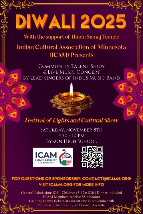 The Indian Cultural Association of Minnesota in partnership with Hindu Samaj Temple invites you to a Night of Culture, Celebration, and Community Spirit