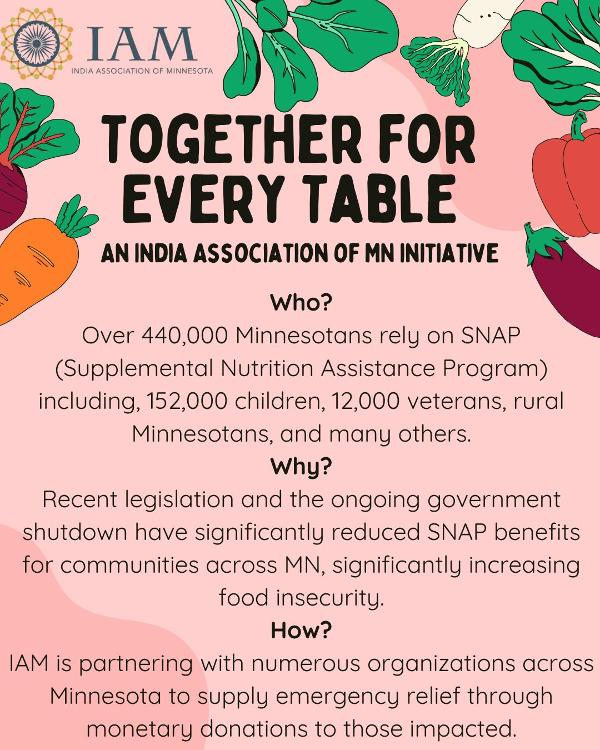 No one should have to go to bed hungry - and together, we can make a difference. India Association of Minnesota is running a fundraiser to help support families impacted by the uncertainties of SNAP funding.